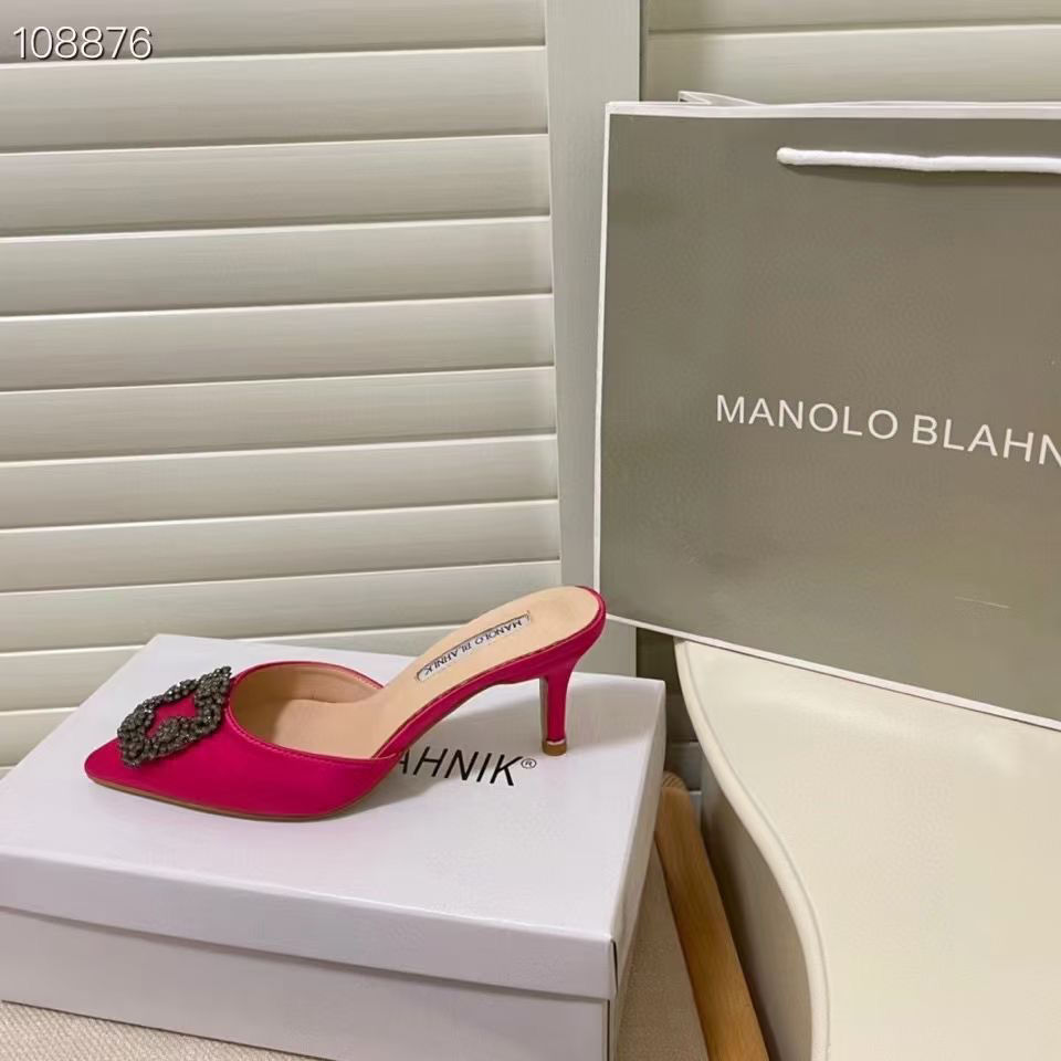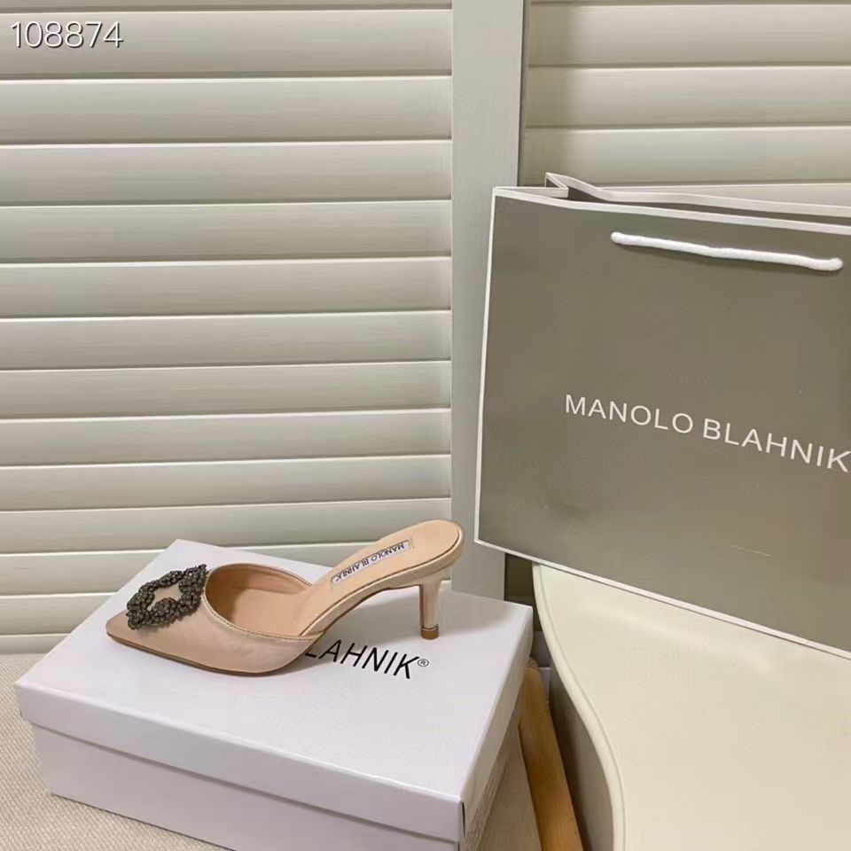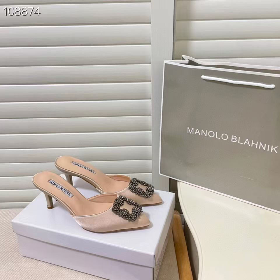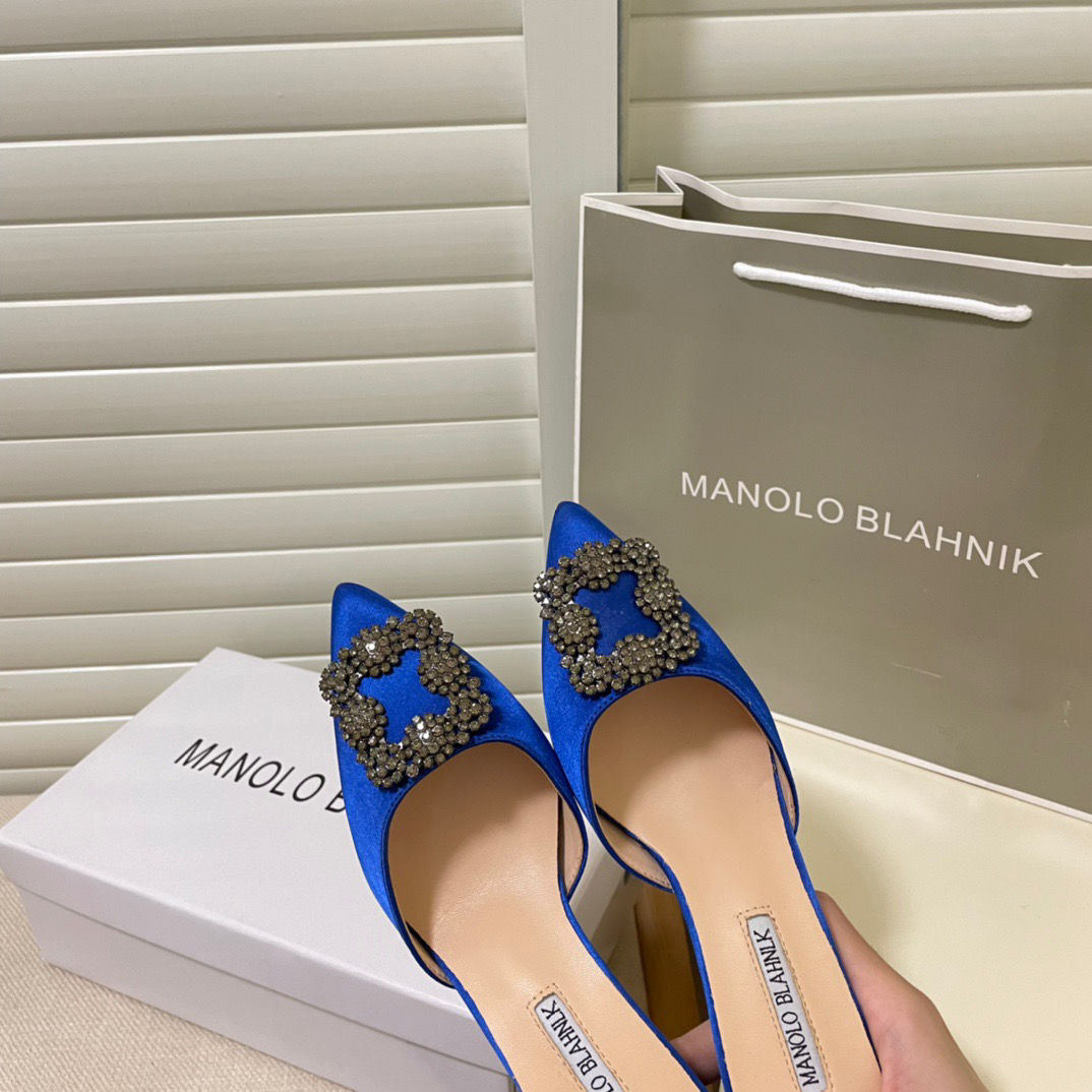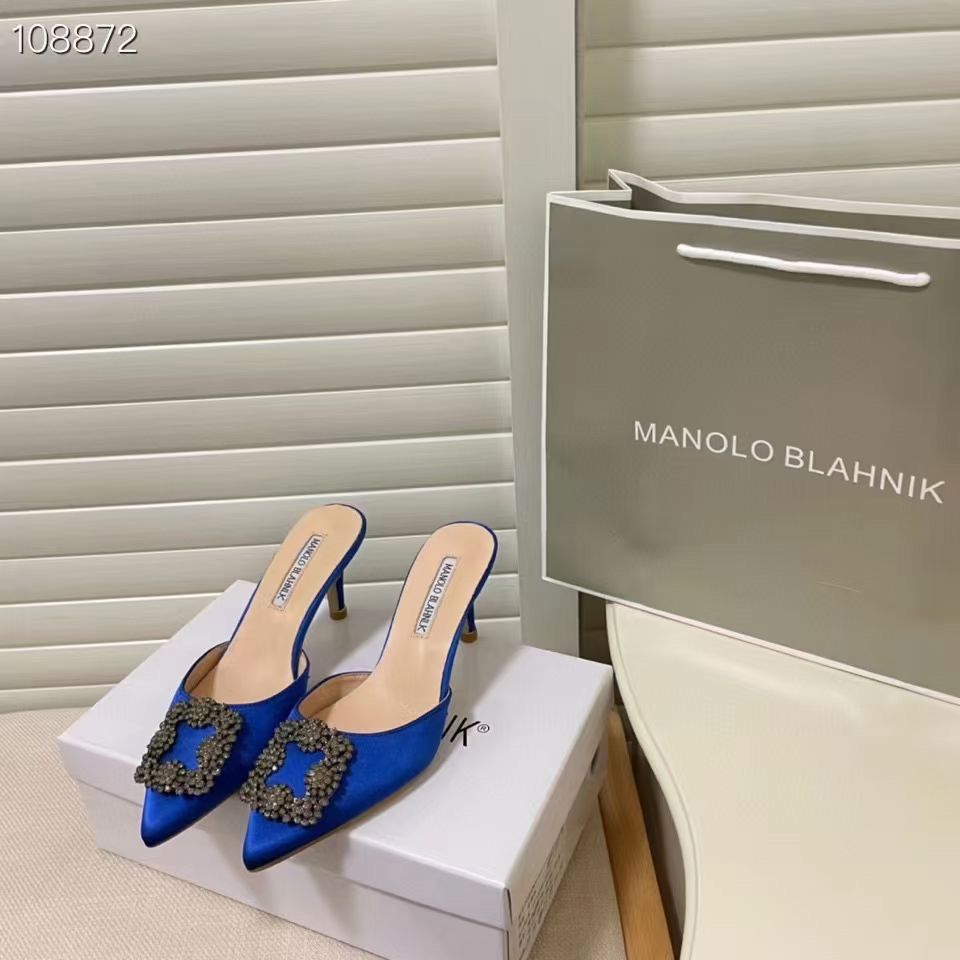 2023 Summer and Autumn New manolo blahnikˉDiamond Slippers European and American Fashion Pointed Toe Square Buckle High Heel Half Slippers