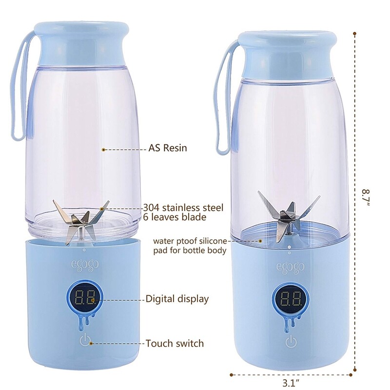 Egogo Portable Blender-Smoothie Blender,14Oz Detachable Juicer Cup For Travel Office School Home,Personal Fruits Juicer And Mixer With Lcd Display,Press Switch Design