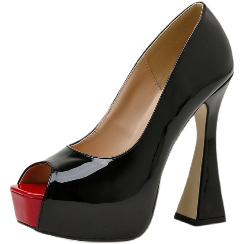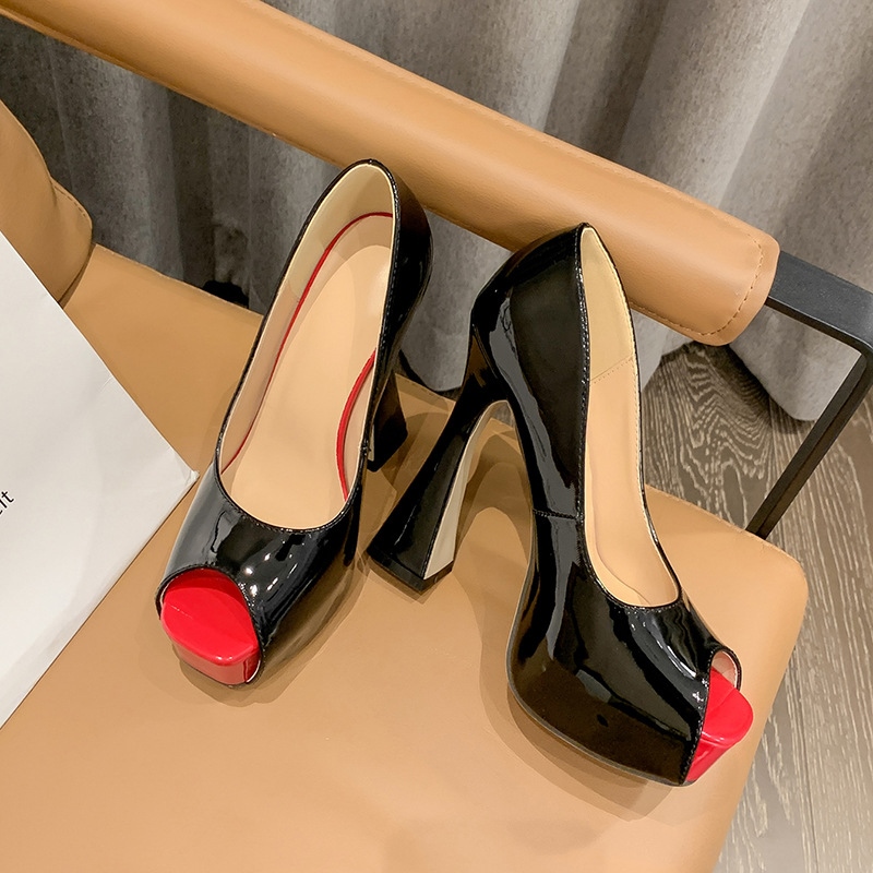 2022 spring and autumn new European and American fashion fish mouth paint thick heel single shoes square toe ladies high heel women's shoes for foreign trade 41