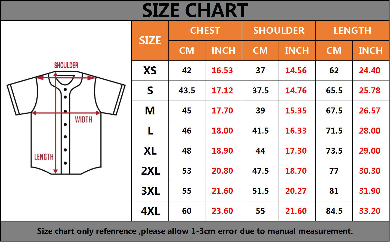 Color:as the picture shows Main Material:Polyester Adult size (size of clothes) :XS/S /M /L /Xl /xxl /Xxxl /4xl The size can be customized according to your own needs and find customer service Neckline: as shown in the picture (with round neck and v-neck) Moisture-wicking. Comfortable Soft Feel. Great for groups: school uniforms, baseball team, easy to customize.(We are free to customize) The color could be slightly different between on the screen and in practice. Style: casual, fashionable Material: polyester Pattern: 3D Prints A Premium product that is comfortable in everyday use. It has good air permeability Unisex (girls can / boys can) Package Content: 1 x T-shirts available for the following listing. please allow 1-2cm differs due to manual measurement, thanks (All measurement in cm and please note 1cm=0.39inch) *Our store accepts any picture customization, you can send the picture to us to customize your own clothes *Please contact our customer service as soon as possible to solve the quality problems, such as less delivery, slow logistics, defects, etc. Please don't rush to comment negatively. If you have any suggestions or deficiencies in our stores, please feel free to give feedback