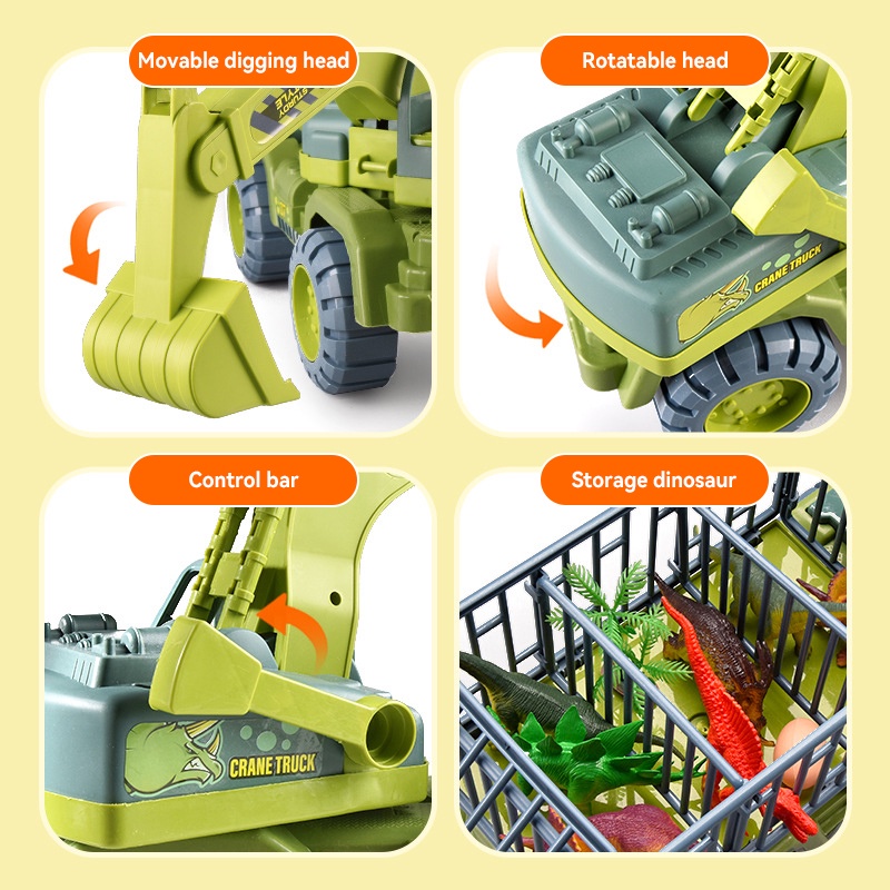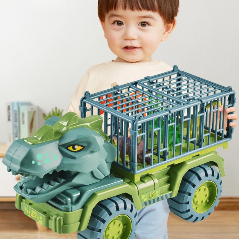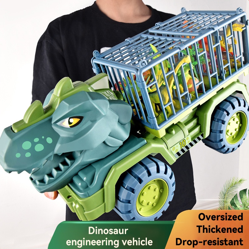 【Large Monster Truck Playset】- Includes a giant T-Rex head monster truck with 4 large size wheels and a large openable fence, 12 realistic dinosaur figures, a tree, a dinosaur egg. It is very convenient to store all subjects on the fence after playing.