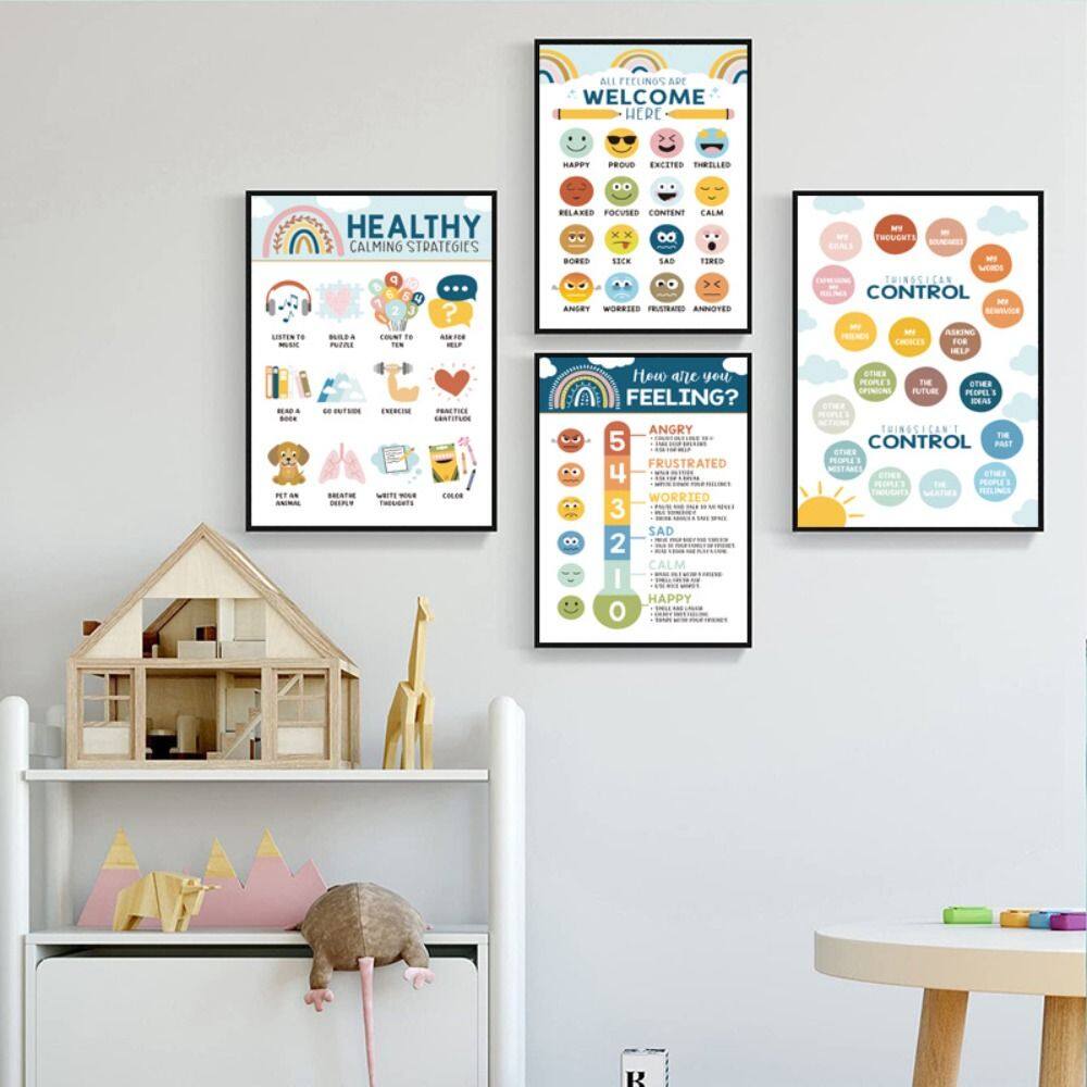 DISFUNNY Baby 16pcs Wall Decoration Kids Educational Toys Learning Poster Bohemian Style Cognition Game Homeschool Early Childhood Education Wall Decal Decorative Painting Education Preschool Posters