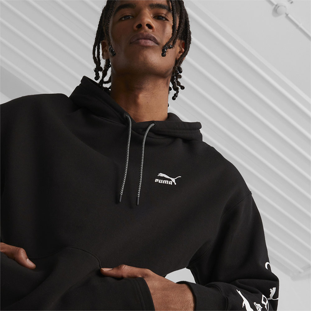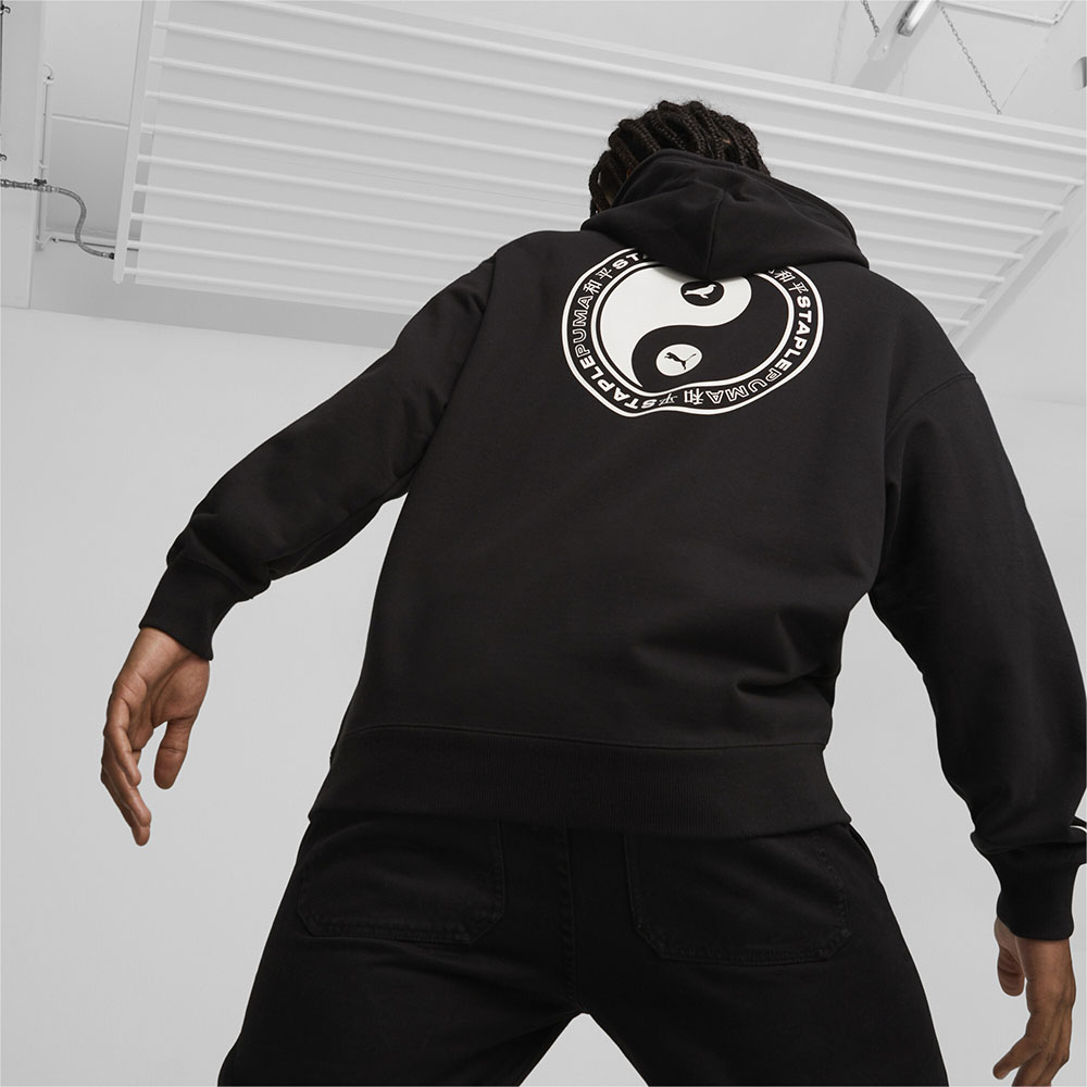 FEATURES&BENEFITSCotton: Cotton in PUMA products come from farms with a focus on sustainable farming such as water efficiency and soil health protection DEAILSRelaxed fitFrench terry jerseyHood with drawstringsKangaroo pocket PUMA x STAPLE brandingRubber in yang print on the back with the STAPLE pixel and the PUMA Cat Logo