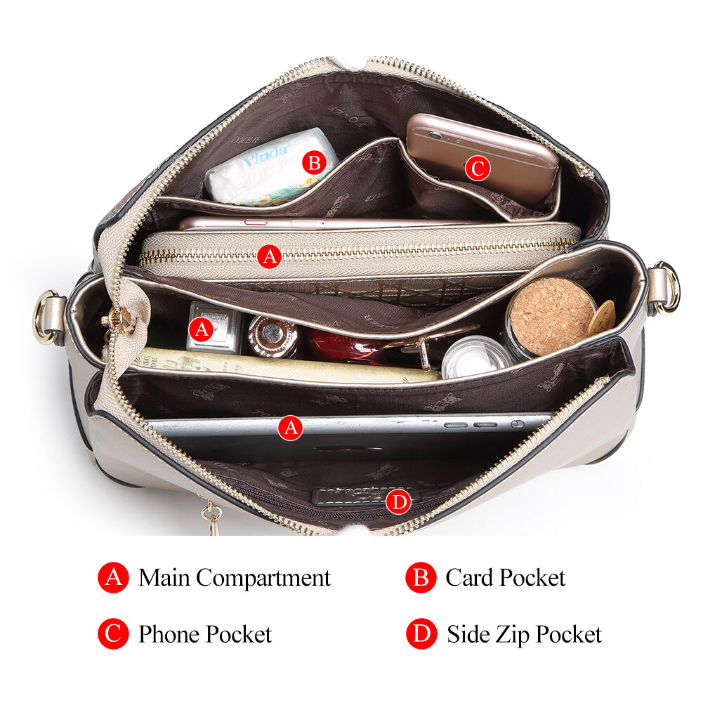 FOXER Women Crossbody Bag Leather Handbag Small Purse Cow Leather Shoulder Bag